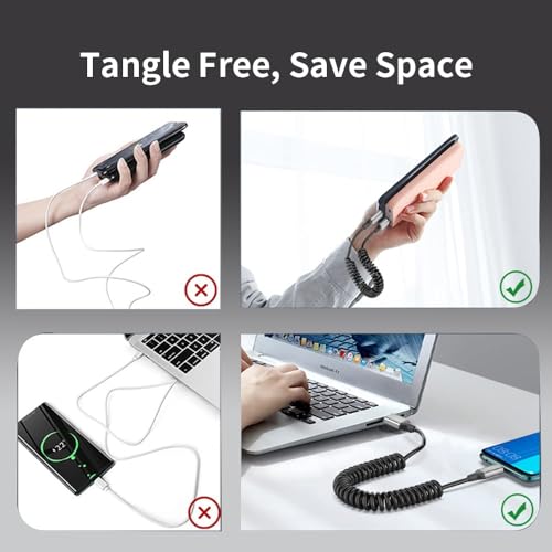 Breve e portatile: questo cavo USB C a spirale è di solito circa 30 cm, piccolo e delicato, facile da riporre. Risparmia spazio e non si aggroviglia facilmente. Adatto per il trasporto in movimento e Android Auto.