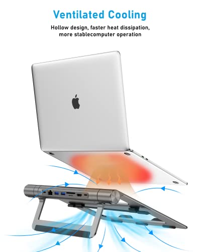 Supporto per docking station USB C rimovibile: l'adattatore Aceele per MacBook Pro/Air e laptop Windows combina perfettamente la funzione dell'hub USB C e del supporto per laptop. Il supporto per docking station USB C può essere staccato nell'hub USB C e nel supporto per laptop, in grado di soddisfare le diverse esigenze. Il design cavo e i materiali in alluminio aiutano il laptop a dissipare il calore.