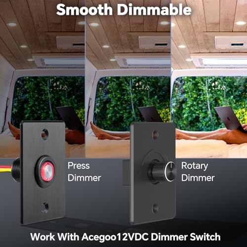 Dimmerabile - Compatibile con acegoo 12V dimmer per creare senza problemi un'atmosfera ad alta scarsa illuminazione e risparmiare il consumo della batteria. Interruttore Dimmer venduto separatamente (ASIN:B0B3WRJW9V)