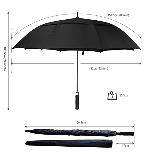 Il PIU Grande Ombrello - con una copertura del diametro 135cm, perimetro 157cm, ombrello di lungezza totale 100cm da chiuso, inluso una 17cm impugnatura, il nostro ombrello antivento è progettato in particolare per signore e signori europei. Anche c'è una borsa da portare. Bello ed elegante ombrello con bel prezzo.