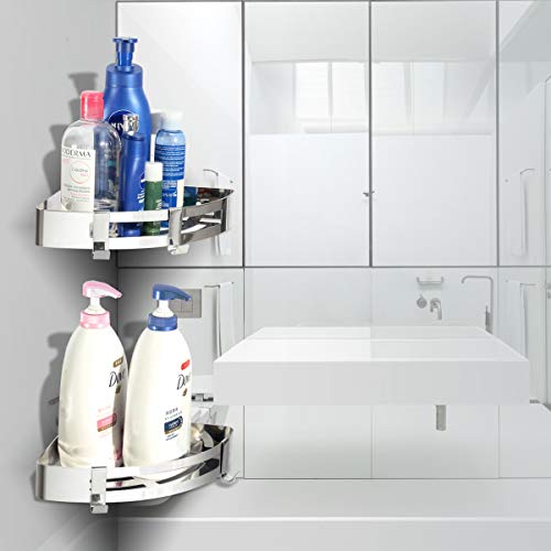 Acelink - Mensola per doccia, senza fissaggio con trapano, in acciaio inox, autoadesiva, mensola angolare, con 2 ganci, antiruggine e antigraffio (2 pezzi)