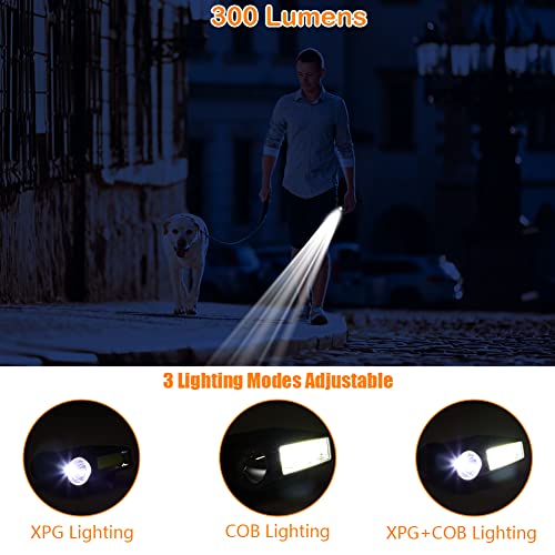【Torcia con cappuccio ad alte prestazioni】 I fari COB sono dotati di 300 lumen di potenza massima, batteria integrata ai polimeri di litio da 800 mAh di alta qualità, 1 volta di carica per 6-22 ore di autonomia. Facile da accendere e spegnere il sensore di movimento: premere a lungo il pulsante 3s, quindi è possibile controllare l'accensione e lo spegnimento della luce agitando delicatamente la mano verso il sensore entro 15 cm.