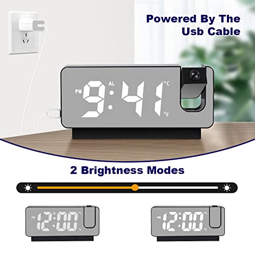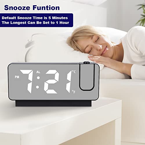 Aceshop Sveglia con Proiettore, Sveglia Digitale con specchio LED da 7,2" Visualizza la rotazione di 180° Comodino con Proiettore con porta di ricarica USB Snooze Orologio a Specchio (bianco)