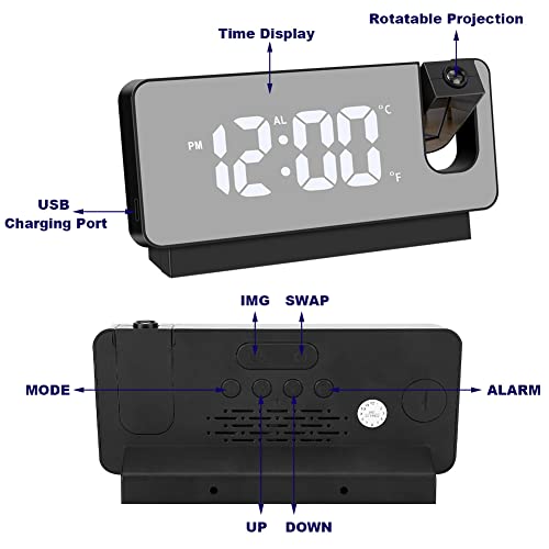 【Sveglia a proiezione e ruotabile di 180°】 Lo specchio acrilico è stato appositamente trattato per evitare graffi e la distanza di proiezione è di circa 9,8 piedi. La nostra sveglia a proiezione è dotata di proiettore rotante a 180°, che può proiettare chiaramente l'ora sulla parete o sul soffitto della camera da letto. Puoi facilmente cogliere l'ora mentre sei sdraiato a letto senza toccare nulla.