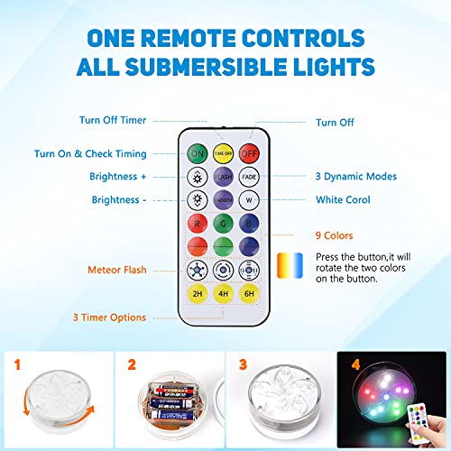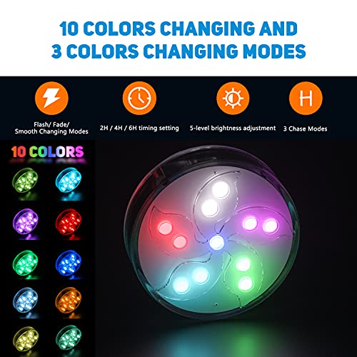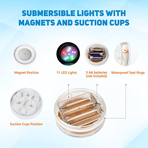 Aceshop 2 Pack Luci per Vasca Idromassaggio Luci LED Sommergibili Impermeabili per Laghetto Subacqueo con Telecomando RF, 11 LED, 10 luci per Piscina con Magneti, Ventose per Decorazione Acquario