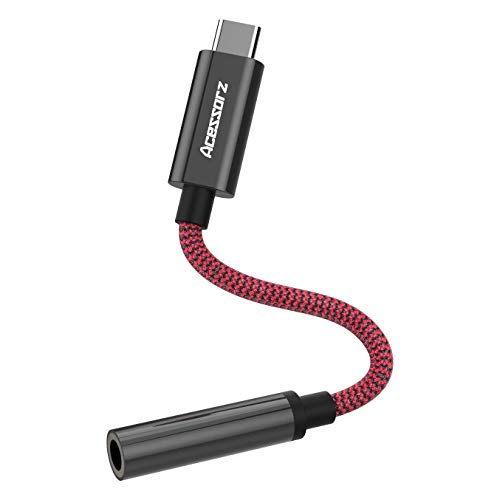 Acessorz - Adattatore audio da USB C a 3,5 mm, jack per cuffie stereo di tipo C con DAC Hi-Res, compatibile con Huawei, Samsung, HTC, Google Pixel 2/2 XL, iPad Pro 2018 e altri, colore: rosso