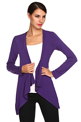 ACEVOG Donne Comodo Cardigan con Drappeggio Collare Manica Lunga Colore Puro