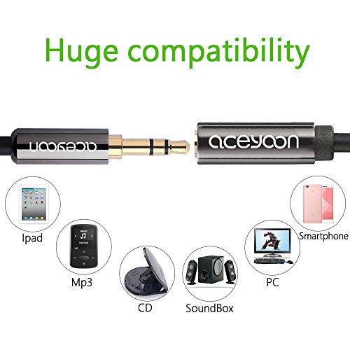 aceyoon 3.5mm male to female audio extension cable, to achieve the voice transmission between PC, Tablets, Smartphones with speaker and earphones. Support two-channel stereo sound.