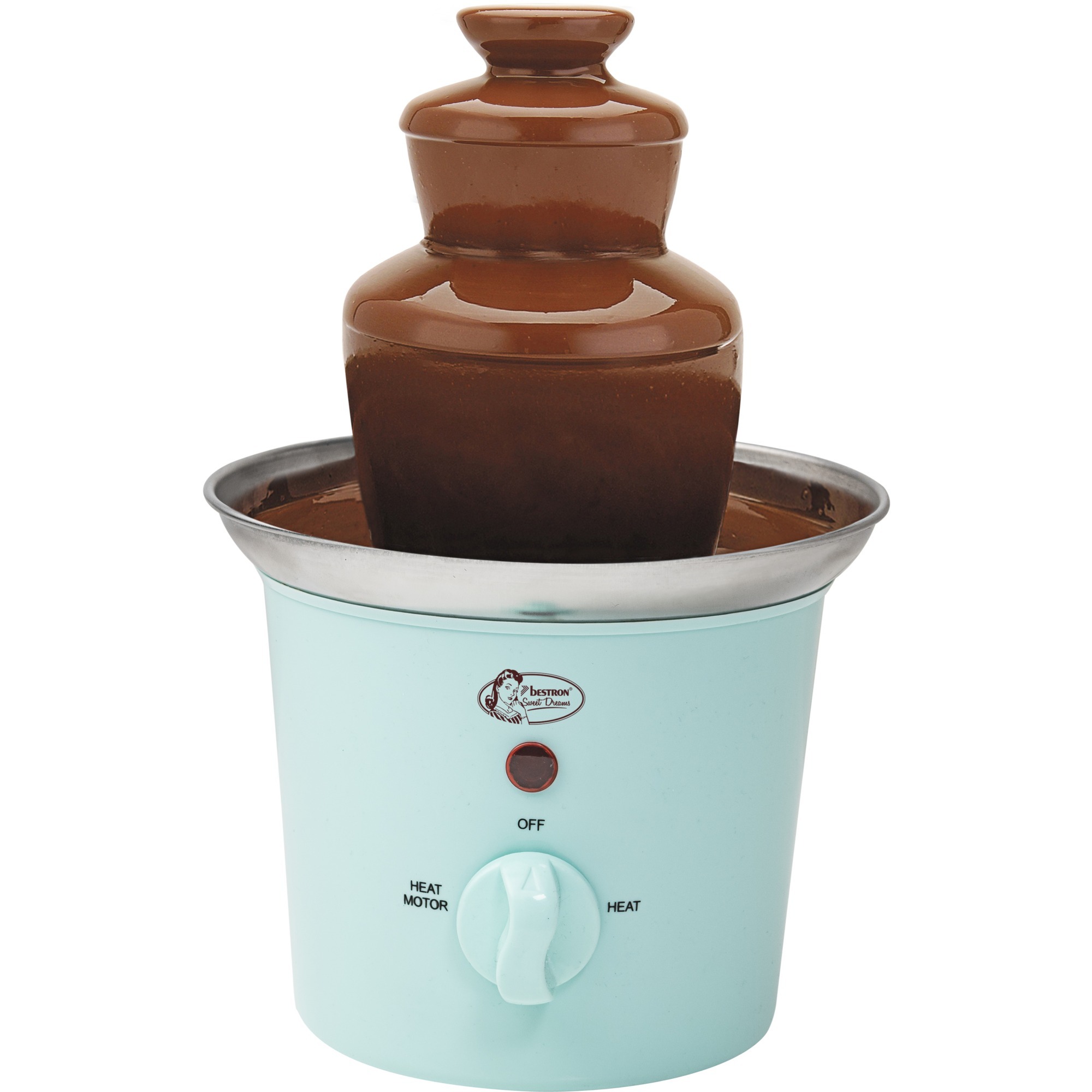 La fontana di cioccolato ACF300M di Bestron rende ogni compleanno, festa e buffet di dessert un''occasione particolarmente festosa ed è adatta per immergere frutta, biscotti, cialde, torte, ecc. La fontana di cioccolato funziona con tutti i tipi di cioccolato liquido (disponibile al supermercato) e copertura di cioccolato (callette). È dotato di una robusta torre in acciaio inossidabile a 3 piani per un effetto pozzo speciale. La ciotola riscaldata in acciaio inossidabile viene utilizzata per riscaldare e mantenere caldo il cioccolato (250 - 300 g). Un termostato elettronico assicura una temperatura ottimale di 48-52°C: il cioccolato non si surriscalda, ma rimane sempre liquido. Il funzionamento avviene tramite un interruttore ON/OFF con 3 posizioni: Off - Heat - Heat/Motor. Per un uso sicuro, l''ACF300M è dotato di indicatore luminoso e protezione contro il surriscaldamento. Per una facile pulizia, tutte le parti rimovibili sono lavabili in lavastoviglie.