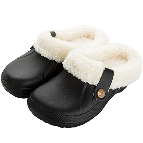 Acfoda Pantofole Uomo Peluche Ciabatte Donna Invernali da casa Calde Zoccoli Giardino e Sabot Pelose Comode Antiscivolo Impermeabile Scarpe Nero 39/40