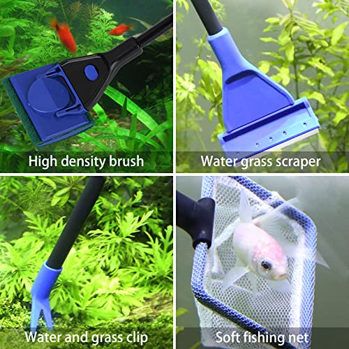 ACHANFLY 5 in 1 Kit Pulizia Vetro Acquario con Retino + Raschietto per Alghe+Spugna Filtro Acquario+Rastrello per Ghiaia + Forchetta Galleggiante Set di Completo Accessori Pulitore Serbatoio di Pesce