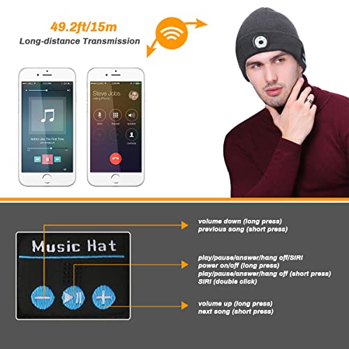 Achort Berretto Bluetooth 5.0 Invernali USB Ricaricabile Wireless Musicale Cappello da Corsa Illuminazione e Lampeggiante modalità LED Lampada Uso per Uomo Donna Sci Escursionismo (Grigio Scuro)