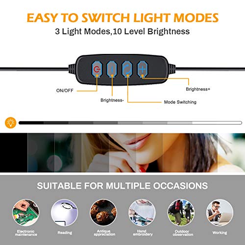 3 luci modello con 10 livelli di luminosità regolabile: la nostra lente di ingrandimento laterale a LED è progettata per i LED di luce diurna. Questi includono 3 luci modello con 10 livelli di luminosità regolabili. Ideale per scatti ravvicinati. Hobby e artigianato non solo forniscono un'area di visualizzazione più uniforme e luminosa, ma consumano anche meno energia rispetto ai LED convenzionali. Pertanto, è incluso un cavo mini USB.