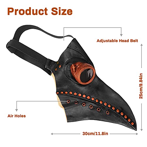 Achort Maschera del Medico della Peste, Cosplay Maschera Steampunk Oggetti di Scena di Halloween Maschera Uccelli in Lattice retrò Uccello dal Naso Lungo Maschera Adulti Dottore della(Nero)