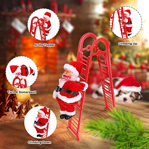 【Design di aggiornamento】 Questa scala da arrampicata elettrica Babbo Natale è progettata con una maschera rossa, adotta un design a doppio binario, non è necessario costruire muri o alberi, può salire la scala al ritmo della musica di 'Jingle Bells', capriola in cima alla scala e poi scendendo con la musica. Una grande decorazione per la tua casa.