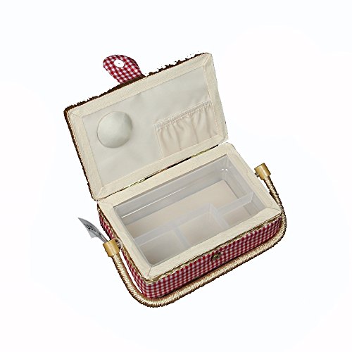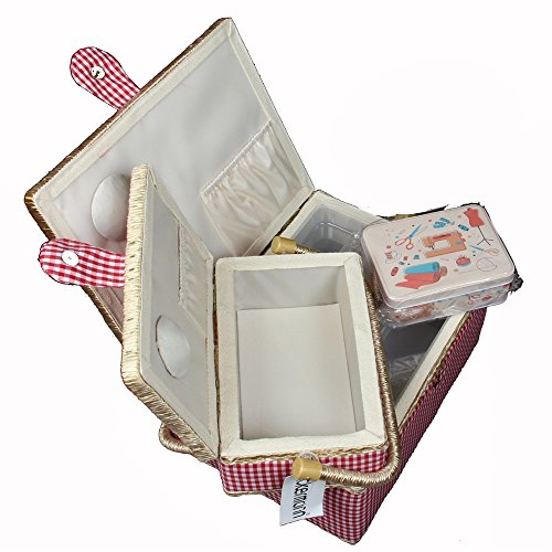 Set di cestini da cucito in stile rustico, rosso, bianco, con maniglia, 1 grande e 1 media + 1 piccola scatola in metallo