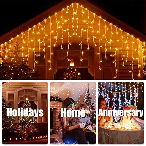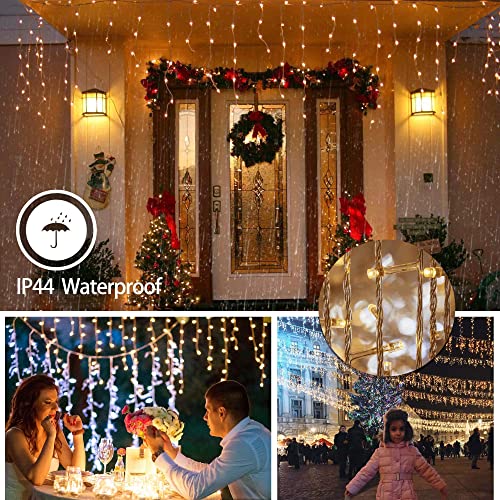 【Cascata Luci Natalizia】La lunghezza totale è di 9m (catena luminosa da 8 m e linea elettrica da 1 m) con 192LED a luci Natale esterno cascata bianco caldo. Puoi decorare camera da letto, finestra, muro per creare bellissimi display visivi.