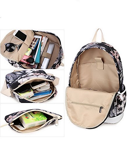 Acmebon Zaino scuola alla moda per ragazza, Zaino casual per computer portatile, Set da 3 pezzi Floreale 621