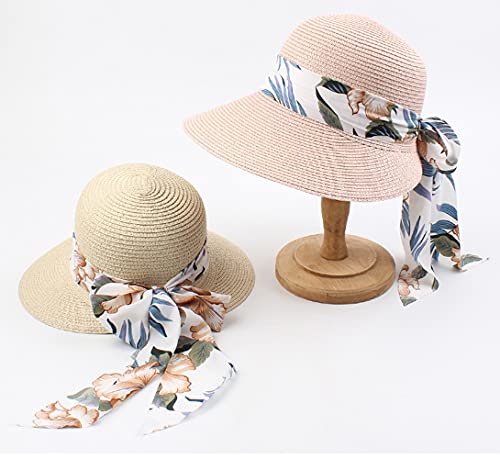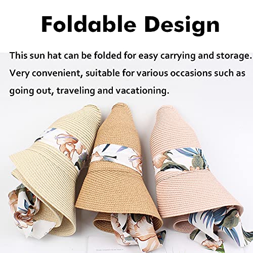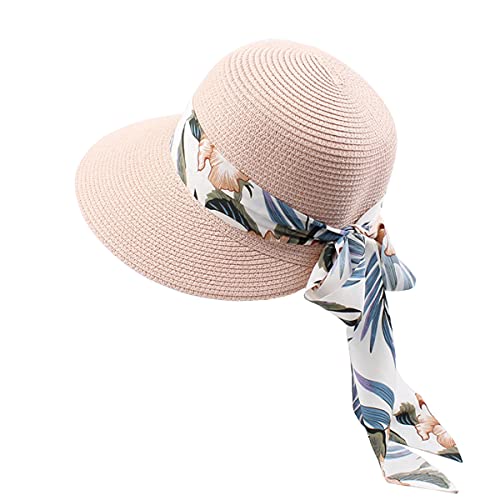 ACMEDE Cappello con Visiera di Paglia da Donna Estiva Cappelli da Sole con Visiera di Paglia UPF 50 Cappello da Spiaggia in Paglia a Tesa Larga Pieghevole Bowknot per Protezione Solare (Rosa)