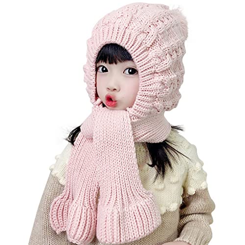 ACMEDE Set di Sciarpa e Hood Berretto Invernale con Pompon per Ragazze Ragazzi 2-10 Anni, Unisex Inverno Caldo Berretto da Sci Autunno Cappello Lavorato a Maglia con Morbido Fodera in Pile (Rosa)