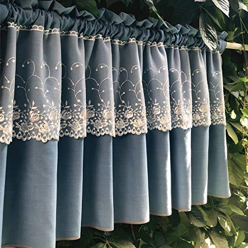 ACMHNC Mantovane per Tende, Tende Cucina Country, Tenda Corta in Stile Vintage con Pizzo, Mezza Tenda Bistro, Tenda da caffè, Tenda Divisoria, 1 PCS,Blu,W x H 130x60cm