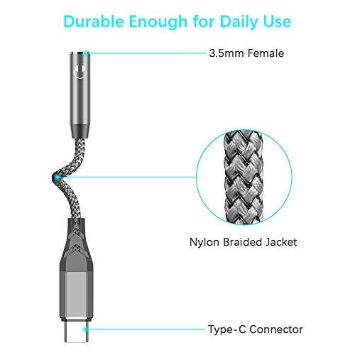 Dongle per cuffie multifunzione: questo adattatore per cuffie da USB C a 3,5 mm supporta la funzione di controllo remoto integrata, puoi comunque realizzare il controllo del volume, saltare le tracce e rispondere/rifiutare la telefonata.
