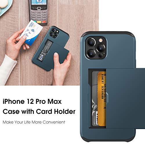ACOCOBUY Cover Compatibile con iPhone 12 Pro Max Antiurto Custodia a Portafoglio Protettiva con Porta Carte Custodia Armatura a Doppio strato Cover in Gomma per iPhone 12 Pro Max 6,7 Pollici Blu navy