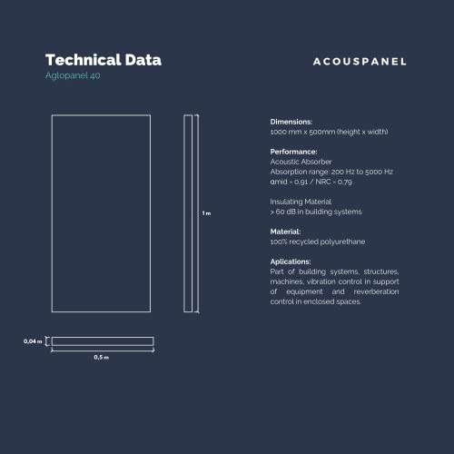 Fatto in Europa. I pannelli acustici sono commercializzati in fogli da 1000x500mm, con uno spessore ottimale di 4cm. Montaggio per mezzo di adesivi, non inclusi. Possono essere facilmente tagliati e modellati.