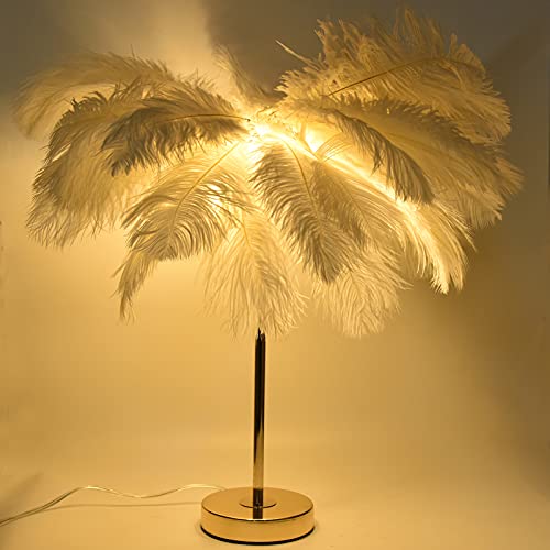 Acouto Lampada da Scrivania in Piume, G4 Lampada da Tavolo in Piume di Struzzo Lampada da Comodino con Luce Notturna Lampada Decorativa per Camera da Letto per Matrimoni(white)