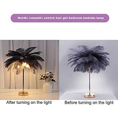 Acouto Lampada da Scrivania in Piume, G4 Lampada da Tavolo in Piume di Struzzo Lampada da Comodino con Luce Notturna Lampada Decorativa per Camera da Letto per Matrimoni(black)