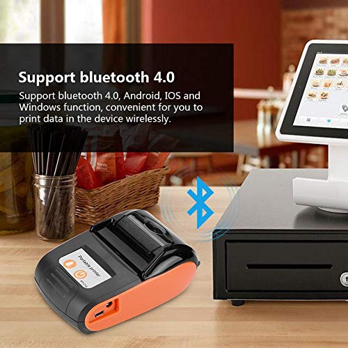 Acouto Stampante Termica, Stampante Portatile, Stampante per ricevute Portatile Wireless Stampante Termica per bollette Bluetooth 58 mm 110-240 V(Arancia)