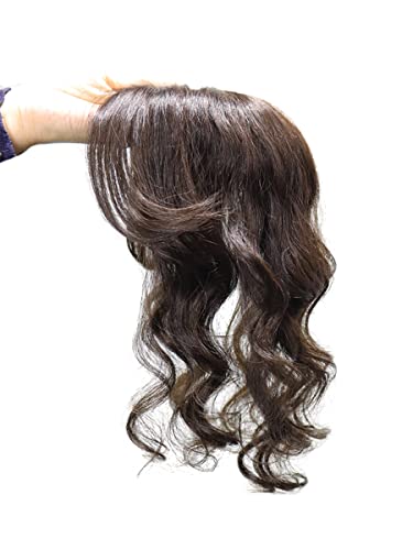 10" acqua onda capelli umani topper pezzi di ricambio per capelli 13x13 cm base di seta capelli da donna Toupee Clip in capelli umani ondulati extension per la copertura dei capelli grigi (marrone)
