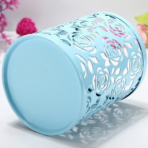 W. aria acqua & Wood Hollow rose Flower pattern cylinder Pen Pencil pot Holder organizer Cattainer