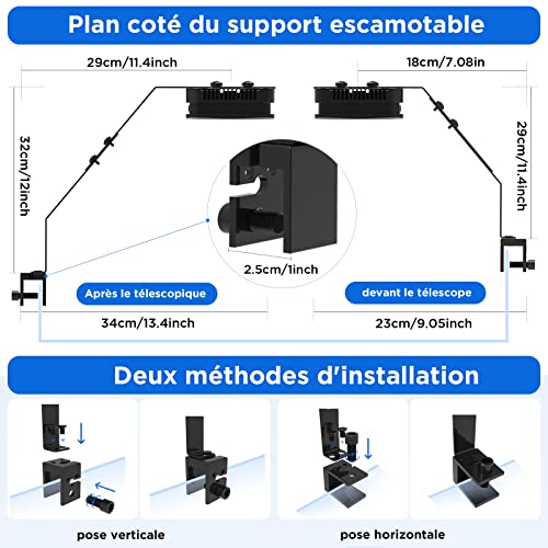 SUPPORT ÉTANCHE ET FLEXIBLE - Le support en aluminium et l'alimentation sont tous deux étanches. Le support est réglable pour fixer la lumière pour un réservoir cube de 18 "~ 24", la longueur horizontale est réglable entre 5,9 "~ 11,8", la hauteur est comprise entre 5,9 "~ 9,8". La luce di recivo Pixie 30 è adatta per acquari con e senza bordo.