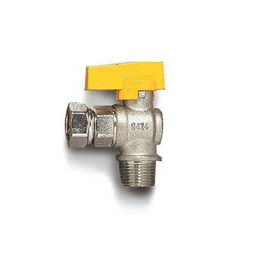 Rubinetto a squadra per gas con attacchi M 1/2" x F 1/2" girevole con chiusura a sfera e maniglia metallica