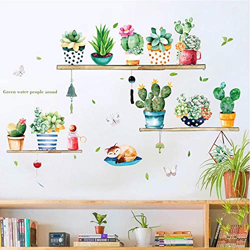 Acquerello cactus piante grasse decalcomanie da parete, collage verde piante adesive da parete, decorazione pastorale rimovibile per camera dei bambini, camera da letto, cameretta dei bambini