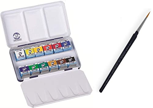 Van Gogh - Acquerello 12 Mezza Benne set metal + 1 pennelli