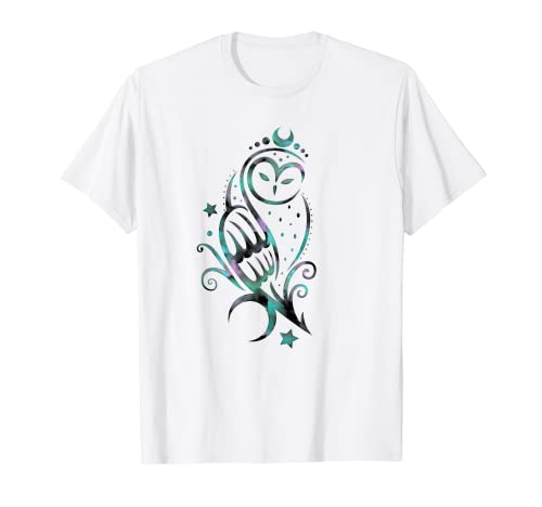 Moon Galaxy Owl per donne, uomini, ragazzi e ragazze. Gufo di neve carino con stelle. Stile del tatuaggio dell'acquerello. Idea regalo per tutti coloro che amano i gufi, l'universo, la fantascienza, la galassia, pagana, l'arte degli animali, la wicca, la natura, le ali, la fantasia, la fiaba, la magia e la notte con le stelle.