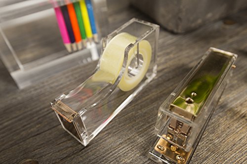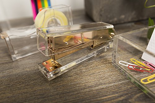 Materiali di qualità acrilico - alta trasparente veste bordi lisci, lucido lucido. Costruzione con tono oro effetto metallo. Utilizza standard Staples (non incluso).