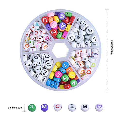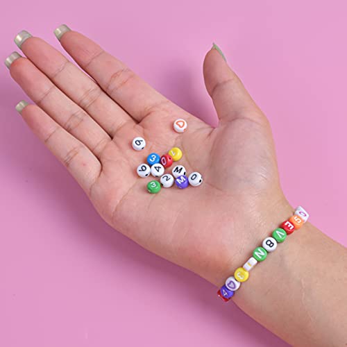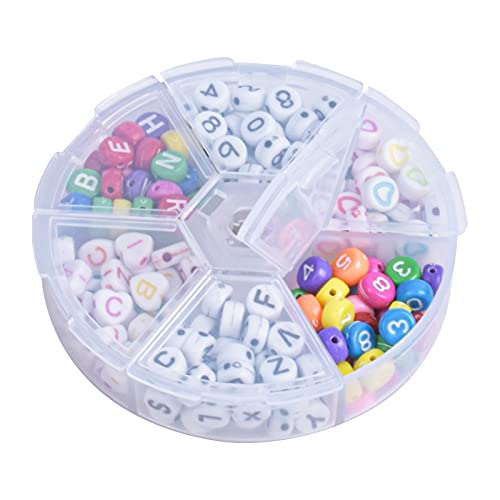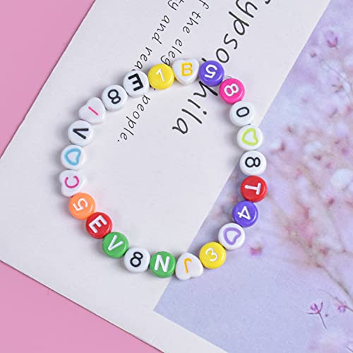 Acrilico Lettera Perline, 240 Pezzi 7mm Perline di Alfabeto Rotondo Variopinto Numeri Perline Misto Perline a Forma di Cuore Lettere per Braccialetti Perline per Fai da Te Bracciali Collane