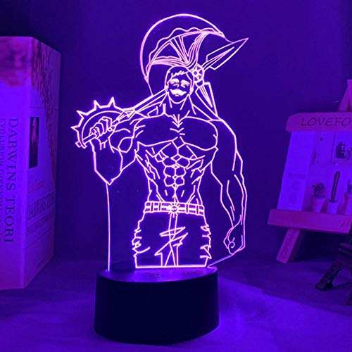 Acrilico Night Light Anime I sette peccati mortali Escanor Child Room Decor Lampada da tavolo colorato 3D Illusione luce regalo di compleanno-16 colori con telecomando