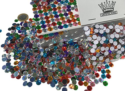 Acrilico pietre Set fai pietre e brillantini multicolore miscela 2100 pezzi)/1500 X 5 mm multicolore rotondo + 400 X 8 mm multicolore rotondo + 200 X 12 mm colorato rettangolare colorate scintillanti rotondi pietre colorate miscela decorazione strass rettangolari pietre in acrilico opale effetto arcobaleno effetto laser effetto arcobaleno pietre trasparente cristallo fai-da-te gltzer pietre pietre strass per decorare decorare Crystal King