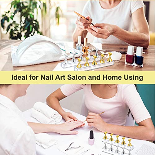 【Set Tip Unghie Espositore】Riceverai 2 set di espositori per unghie in acrilico argento e oro, ogni set include 1 base in acrilico di cristallo e 5 portapunte per unghie, 96 Stucco bianchi riutilizzabili che ti aiuteranno a praticare le tue abilità di tip nail art