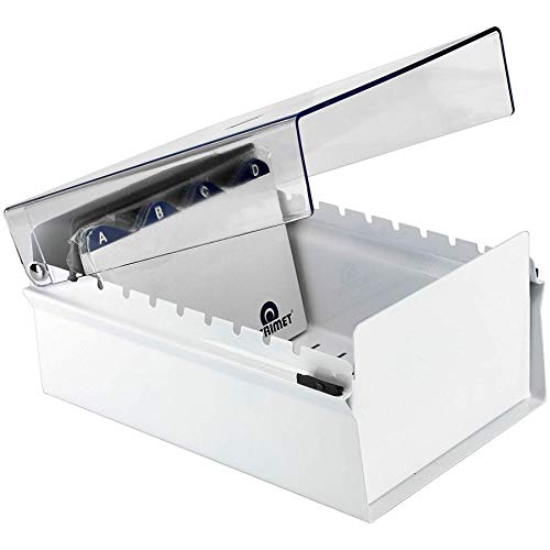 Acrimet Portacarte 4'' x 6'' Organizzatore con base in metallo resistente (Dimensione dell'indice AZ 155mm larghezza x 115mm altezza e divisori inclusi) (Bianco con coperchio trasparente in plastica)