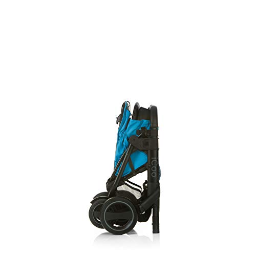 ICOO Acrobat Shop N Drive Passeggino Regolabile in Altezza fino a 18 kg con Posizione Nanna e Coprigambe + Ovetto dalla Nascita, Pieghevole con una Mano, Leggero, Riflettori - Blu