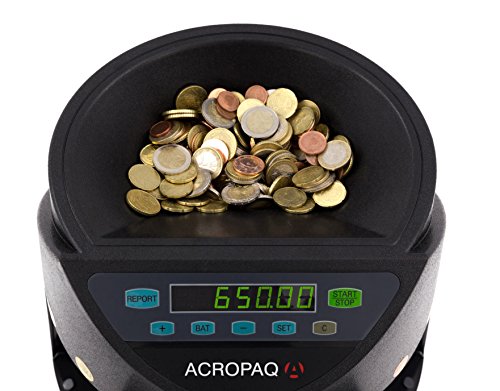 Acropaq cc601 - Contamonete e Mailbox di pezzi Moneta Euro - Funzionamento semplice - Vassoi removibili - Nero