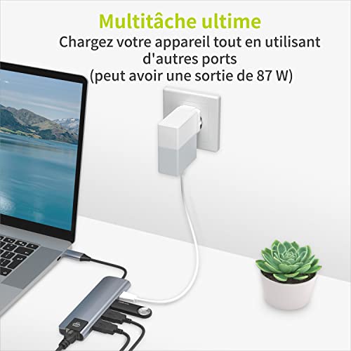 1) 3 porte USB3.0 per il collegamento di dispositivi USB (USB3.0 consente velocità di trasferimento dati fino a 5Gbit/s) 2) 1 porta USB-C per caricare il MacBook o qualsiasi altro prodotto che consente la ricarica tramite USB-C PD, fino a 87W max. 3) 1 x LAN RJ45