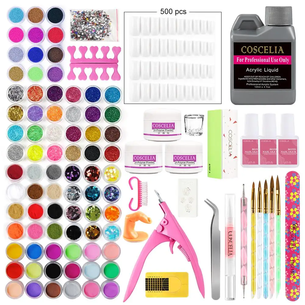 Pro Acrylic Manicure Set 78pcs Acrylic Powder Glitter 120ml Liquid For Nail Art Kit Crystal Brush Tips Tools Kit For Manicure