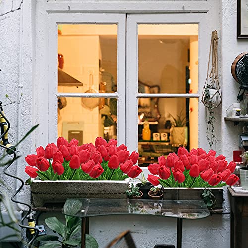 【Aspetto realistico】: i tulipani artificiali sono realizzati in seta e plastica di alta qualità e utilizzano una tecnologia di colorazione avanzata, una lavorazione fine, una consistenza chiara, colori vivaci, petali squisiti e caratteristiche realistiche che rendono le persone realistiche quando le toccano