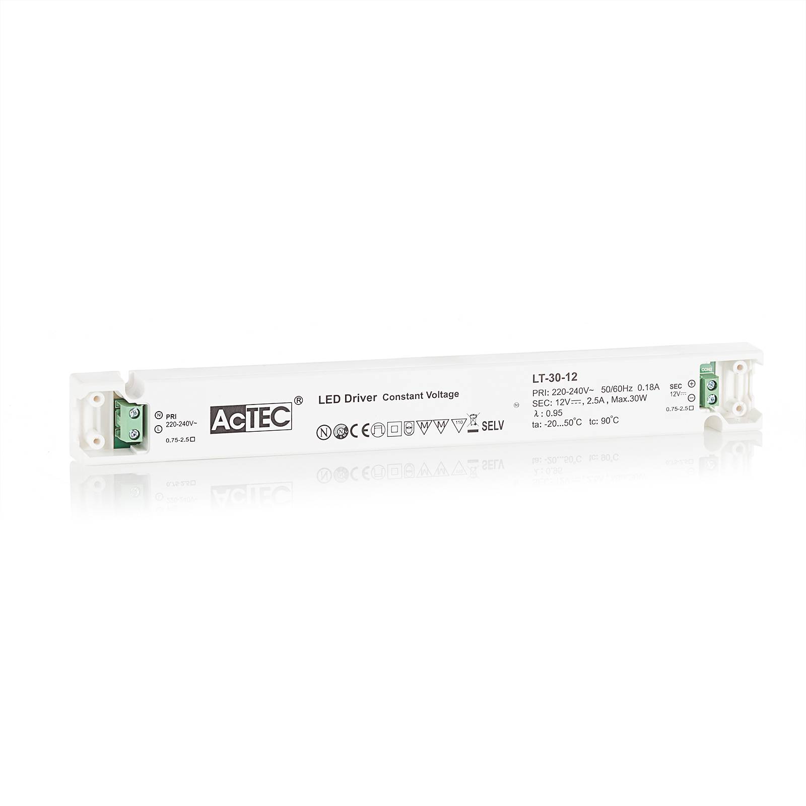 Driver LED a tensione costante LT 12V 30W, non dimmerabile - design molto sottile - isolamento SELV - IP20 - protezione da cortocircuito, circuito aperto, surriscaldamento e sovraccarico - 220-240V, 50-60Hz - carico minimo 0,5 W - temperatura ambiente -20 a 50 °C